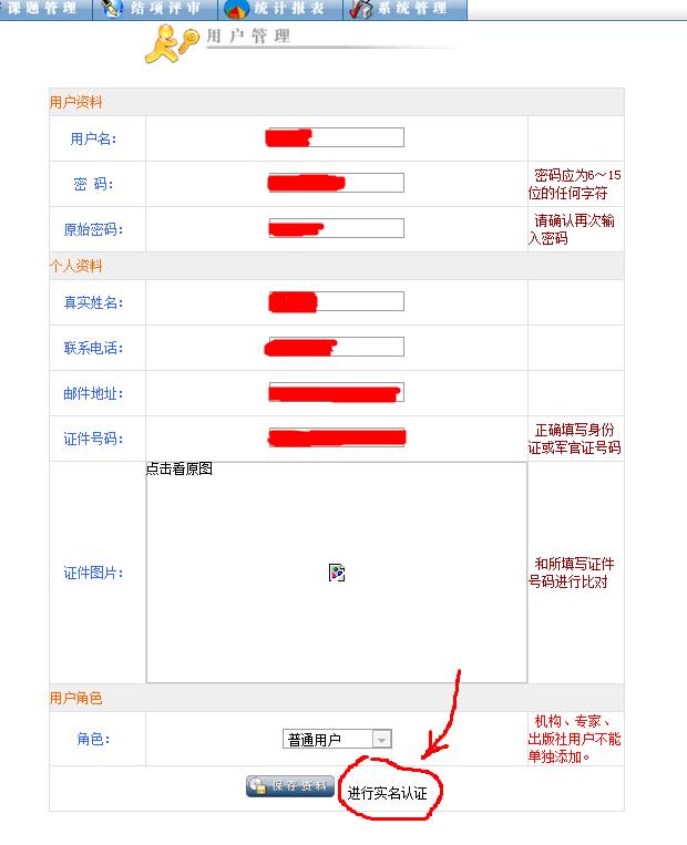 申请人如果是首次注册,建议先完善“个人详细资料”,特别是正确选择“所属系统”和“工作单位”,然后再做实名认证。否则没有单位信息做匹配,机构用户是看不到该申请人的。第二种情况,申请人以前只注册个人用户,没有填写个人详细资料或填报课题的。这次如果忘记密码了,只能和社科办联系寻求帮助了。第三种情况,申请人单位有变更,先在个人详细资料里修改工作单位,然后做实名认证,否则现任机构用户也看不到该申请人的资料。